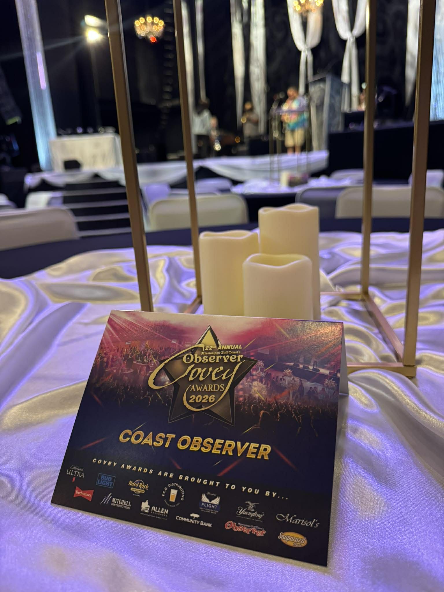 I also had the opportunity to step on stage as one of the presenters, announcing winners including Best Italian Cuisine to Salute, Best Sports Bar to Rags to Riches, and Favorite Sportsbook to BetMGM at Beau Rivage. It was special to see businesses I have worked with and interviewed throughout the year being recognized and winning, and to be a part of that moment from a different perspective. Being involved with Coast Observer magazine and covering the Covey Awards adds an extra layer of appreciation, knowing the magazine helps showcase and highlight these businesses and the people behind them.
