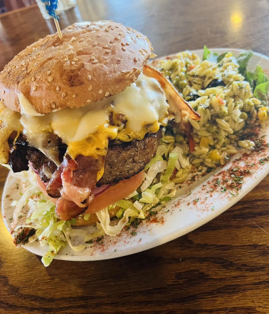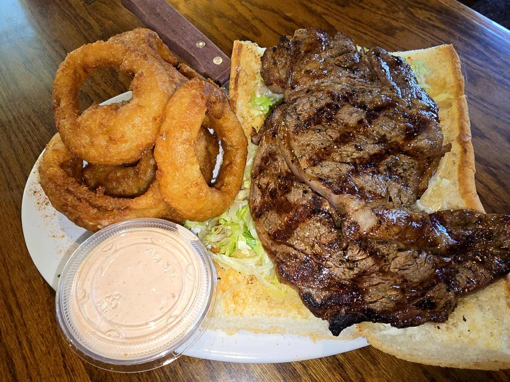 The 10 oz. hand formed burgers melt in your mouth and can be dressed however you wish with some top choices being the Juicy Lucy, the Mind Melter, the Bulls-Eye Baby, Andy’s Hot Jalapeno, the Hippo, The Biloxi, the Messy Mushroom and the Blues Brothers Burger.  We had the Blues Brothers Burger oozing with loads of tangy melted blue cheese, dressed, and a side of that delicious orzo pasta salad with a hint of black olives, chickpeas and sweet peppers. They offer a Waygu Burger as well as a 14 oz. certified angus beef Ribeye Dinner.  We opted for the Ribeye Steak Sandwich – a 10 oz. choice ribeye chargrilled to your preferred doneness, dressed on New Orleans poboy bread,    with a side of beer battered onion rings.  Yes, indeed, this steak sandwich does rival any of the competition, and the char on the steak as well as the burger was really smoky and savory!  The Fire Dog Seasoning is a wonderful blend of spices and “ I ain’t scarred of no spice, lol!”  Of course, we had to do the Porky Pig – a triple decker club with grilled ham, bacon, and cheddar, dressed with a side of your choice.  For the vegetarians we enjoyed a fantastic Portobello Eggplant Stacker – a bun sized portobello cap marinated and chargrilled with eggplant rounds, grilled onions and Swiss cheese dressed and we chose steamed broccoli for the side.  This sandwich was delightful and healthy even if you are a carnivore!  Other awesome sandwich, poboy and wrap choices are the Ultimate Oyster Poboy, Chicken Ham and Bacon Combo, Chicken Sandwich, Roast Beef Poboy, Philly Cheese Steak or Chicken, a Pressed Cuban, the Reuben, a Cheeseburger Poboy, Shrimp or Fish Poboy, a Steak Wrap, a Cajun Chicken Wrap, the Cordon Bleu Wrap, a Chicken or Chicken Caesar Wrap, all with your choice of one side.  They have Jason’s Shrimp Salad, Taco Salad, Chicken Caesar and the Orzo Pasta Salad.  Homemade Pecan Pie, Homemade Bread Pudding and Funnel Cake Fries are your dessert choices.  We had the Funnel Cake Fries topped with powdered sugar along with an Old Soul Bourbon Whiskey over ice that was also made in Mississippi. I’ve learned that a smooth whiskey really does pair well with sweets!  Cheli was losing her mind over these Funnel Cake Fries as she said they reminded her of slivers of beignets!!