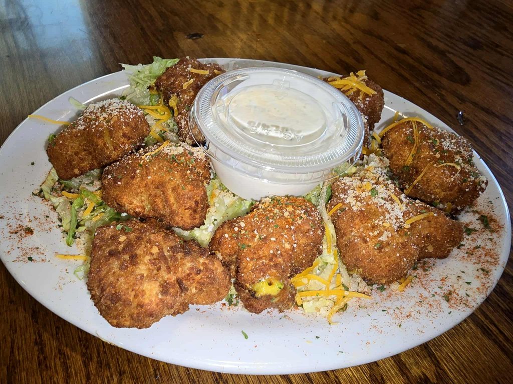 Joelle started me off with a smooth Penelope Bourbon Toasted, distilled in the state of Mississippi by the Cathead distillery, served over ice and sipped slowly, I really enjoyed this bourbon.  It paired nicely with the amazing fresh catch Louisiana oysters we devoured.  We ordered the Chargrilled Trio with four Chargrilled – garlic butter and parmesan, four New Orleans style BBQ – spectacular secret spices, and four Artichoke and Bacon – piled high with a rich creamy melted cheese. I honestly loved these fresh oysters all three ways and can not wait to do it again!  We also had a cup of Homemade Chicken and Andouille Sausage Gumbo that went well with the ½ lb. of deepwater Argentina Royal Reds – seasoned perfectly and served with corn on the cob, new potatoes and garlic butter.  They also offer a Seafood Platter, Shrimp Alfredo, Filet of Fish – blackened or deep fried, and the Yellowfin Tuna Plate – chargrilled.  These items are from the seafood selection of customer favorites, and are served with potato or orzo pasta salad, and choice of side salad or steamed broccoli.  Although we had these starters first, we still had to try the newest additions to the Appetizer selection.  The Broccoli Bacon Cheese Bites are lightly breaded and fried with a smooth and creamy inside and a crunchy outside with Ranch dressing for dipping.  These were really tasty and reheated in a cast iron skillet in the oven keeping all the textures true.  The Pig Wings went over well at my house – tender bone-in pork shank, also served with Ranch Dressing, they were very succulent and flavorful, and yes, this is when pigs fly!  Other tempting appetizers include Chicken Wings – naked, plain, mild, medium, or hot or BBQ, Thai Chili or Lemon Pepper, with your choice of blue cheese or ranch dressing for dipping, a sure customer favorite.  Tender fried Calamari, Chicken Tenders, Fried Blue Crab Claws, Cheese Bites made with Wisconsin Cheese Curds, Disco Fries with gravy and cheddar – waffle fries that we did love as a side, Half Dill and Half Jalapeno Chips – deep fried and served with ranch, Loaded Fries – cheddar, bacon, green onions, ranch and sour cream, Super Nachos, Sweet Potato and Idaho Waffle Fries, Fried Green Tomatoes – deep fried and topped with Hollandaise, shrimp and parmesan, Chicken Fries, Chicken Quesadillas, Onion Rings and Artichoke Hearts – battered and deep fried served with honey mustard and topped with parmesan, all of these tasty morsels make for  a very great selection of appetizers that are all masterpieces, a large up-grade from ordinary bar food!