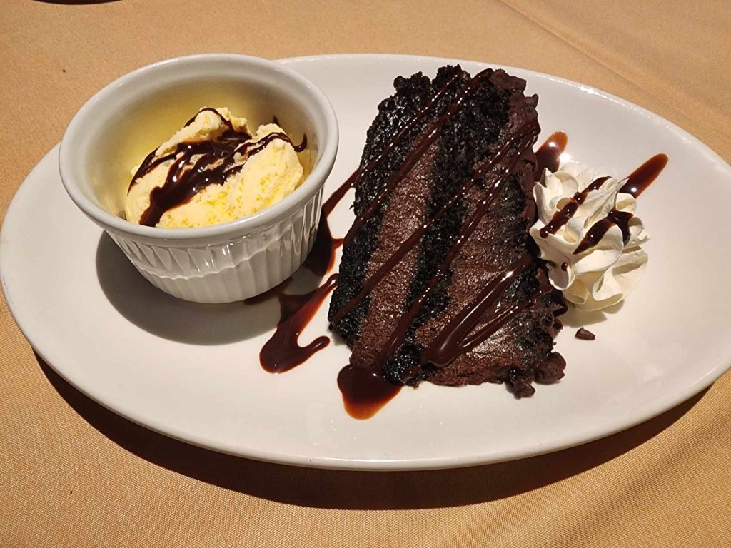 For dessert we had warm chocolate cake served with vanilla ice cream and chocolate sauce, pecan pie with vanilla ice cream with caramel sauce, and Cheli had the Crème Brulee. All paired perfectly with our Millionaires Coffee. The Pecan Pie was wonderful again for breakfast with my dessert coffee at home!