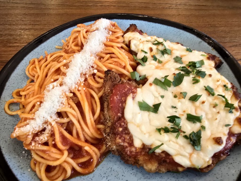 Mawi Tortillas of Ocean Springs, began in NOLA as a tortilla supplier that ventured into meals presented be Chef Wilfredo Avelar, who trained with Emeril Lagasse. Presenting authentic Central American Dishes fused with coastal ingredients, he was recognized by the New York Times as “Best Restaurant in NOLA Right Now”. He offers fresh fried corn tortillas, nachos, and tacos with fresh gulf shrimp, Chile braised beef brisket, and Sofrito marinated grilled chicken. We enjoyed the Honduran Chicken tacos, rolled and fried crispy with a fresh cabbage slaw, it was amazing! Chef Avelar also ventured into Shorelines, serving some highly innovative coastal delicacies such as Deviled Eggs with Trout Caviar, Fried Calamari or Oysters, fresh salads, pastas and sandwiches. We enjoyed the Chicken Parmesan with spaghetti – a breaded chicken cutlet fried and topped marinara and mozzarella with marinara and pecorino romano cheese.
