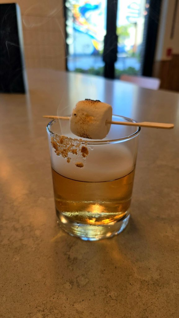 CRAVE Food Hall is a fantastic place to enjoy yourself with so many options! They have so much to offer presenting it in a new way while preserving the history and culture of Ocean Springs Downtown. I sampled two more specialty, hand-crafted cocktails for dessert – the Secret Garden Martini with Cathead Honeysuckle Vodka, Earl Grey honey syrup, rosemary, fresh lemon juice and soda water, and the Campfire Old Fashioned – Sagamore Rye Whiskey, brown sugar and vanilla syrup, cocoa bitters, walnut bitters, garnished with graham crackers and a toasted marshmallow. Next adventure, to sit on the patio and enjoy live music on a nice moonlit night. Make it a priority to check out CRAVE Food Hall and PROOF Cocktail Bar in your near future!