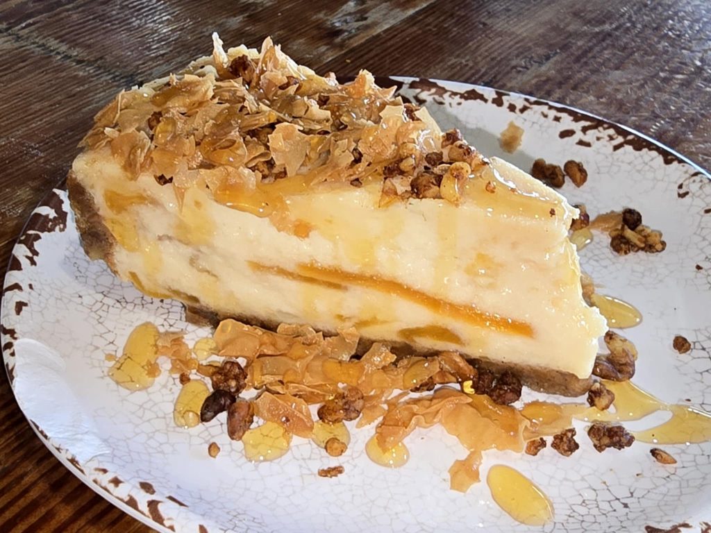 Cheli and I are totally enthralled with the Baklava Peach Cheesecake! Cheesecake, peaches, graham cracker crust, if that’s not wonderful enough, topped with baklava crumbles and Lady May Honey! I later found out that had served this at Taste of Ocean Springs the week before, when I was for-going desserts and I was sick that I had missed it! When I say fabulous, fabulous, fabulous, I certainly mean it!