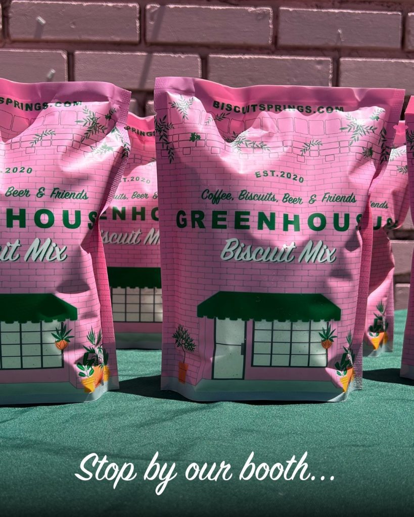Lunch-ish, also served all day offers several sandwiches, salads and soups. Sandwiches are served with fresh fruit or Zapp’s potato chips (crawtaters), spiced pecans, dressed greens soup of the day or a parfait are also available for a small up-charge. We had the Club Sammie – ham, turkey, bacon, pimento cheese, lettuce and tomato, mayo and mustard in three slices of white toast. This is a monster sandwich and is every bit as delicious as it sounds. Turkey Avocado with lettuce, tomato and honey mustard on multigrain bread; Chicken Salad with lettuce, tomato and mayo on multigrain bread; the BLTEA – a BLT with fried egg and avocado on multigrain bread; Ham Sandwich comes with ham and brie, lettuce, honey mustard, and onion jam served hot on multigrain bread; PBJ with seasonal jam and peanut butter on toasted multigrain bread, Pimento Cheese with grainy mustard and pickled onions on multigrain bread, and the Smoked Salmon & Avocado Toast – lemon avocado mash, lettuce, smoked salmon, pickled onions, capers, and everything seasoning on toasted multigrain bread are more delectable choices. Many sweets, cookies, cake slices and pastries are available fresh daily. We had a really chunky chocolate chip cookie and a lemon pound cake slice that were so divine! For take home and from the pantry the Greenhouse sells the Biscuit Mix, Seasonal Jam, Pimento Cheese and Chicken Salad to name just a few of their house made treats! Kait strives to bring the freshest quality, locally sourced ingredients to her table. The freshness and unique fusions make the Greenhouse a café that you should add to your list of must-dos!