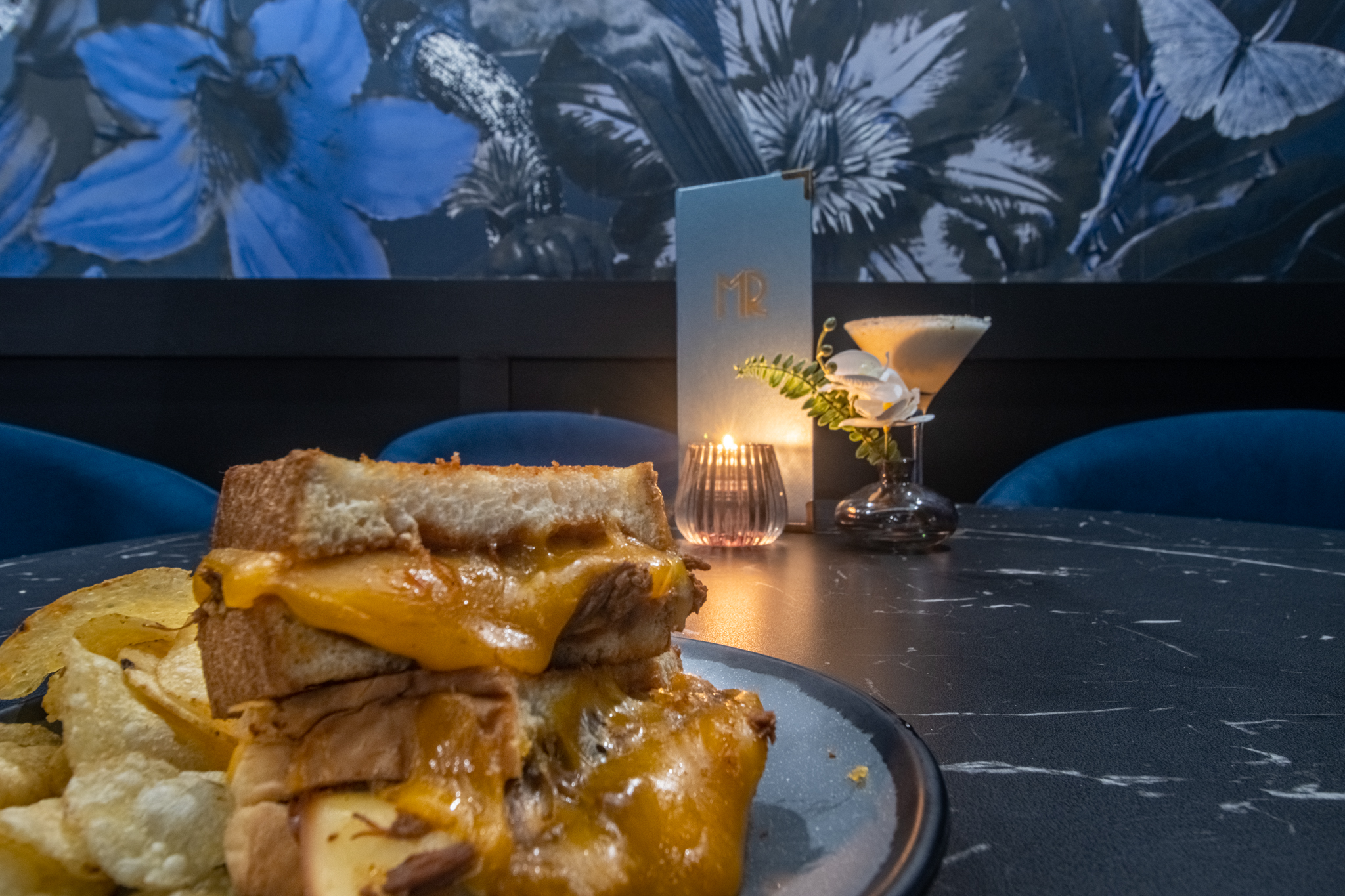 Behind the bar, things get serious. Their mixologists don’t just make drinks- they compose them. Whether it’s a smoky blood orange old-fashioned, or a Soft Landing with drops of lavender bitters, every cocktail is artfully built and flawlessly executed. A personal favorite was The Hell Fire- a spicy yet delicious cocktail served with a bubble to create a delicious aromatic experience. Pair it with crispy pork belly with julienne jalapenos and baby arugula with a sweet balsamic, or perhaps their beautifully crafted charcuterie board featuring smoked gouda, whipped feta, locally sourced sausage, and divinely sweet bruleed strawberry slices- and suddenly you’re not just out for drinks. You’re somewhere worth remembering.
