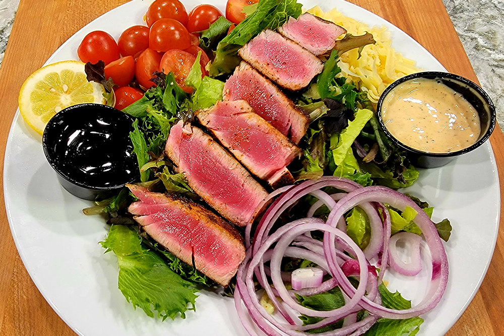 Other highlights included the Fried Italian Breaded Meatballs, the Chicken Parmesan, and the Red Fish Special with Seafood Alfredo, a seasonal dish worth catching while it is available. The Smoked Salmon had the perfect amount of smoky flavor and was both fresh and flavorful, while the Roasted Turkey Melt, made with house-smoked turkey, was juicy and packed with taste. For seafood fans, the Fried Flounder and Shrimp and Broccoli Stir-Fry showcased fresh, local ingredients with just the right seasoning. Even the big, juicy cheeseburgers proved that there is something for every palate at Salute. Dessert was equally impressive, with the Tiramisu made from a recipe straight from Napa, Italy, transporting diners with every bite to the heart of Europe. It was creamy, perfectly balanced, and just like the authentic Italian treat it promised to be.