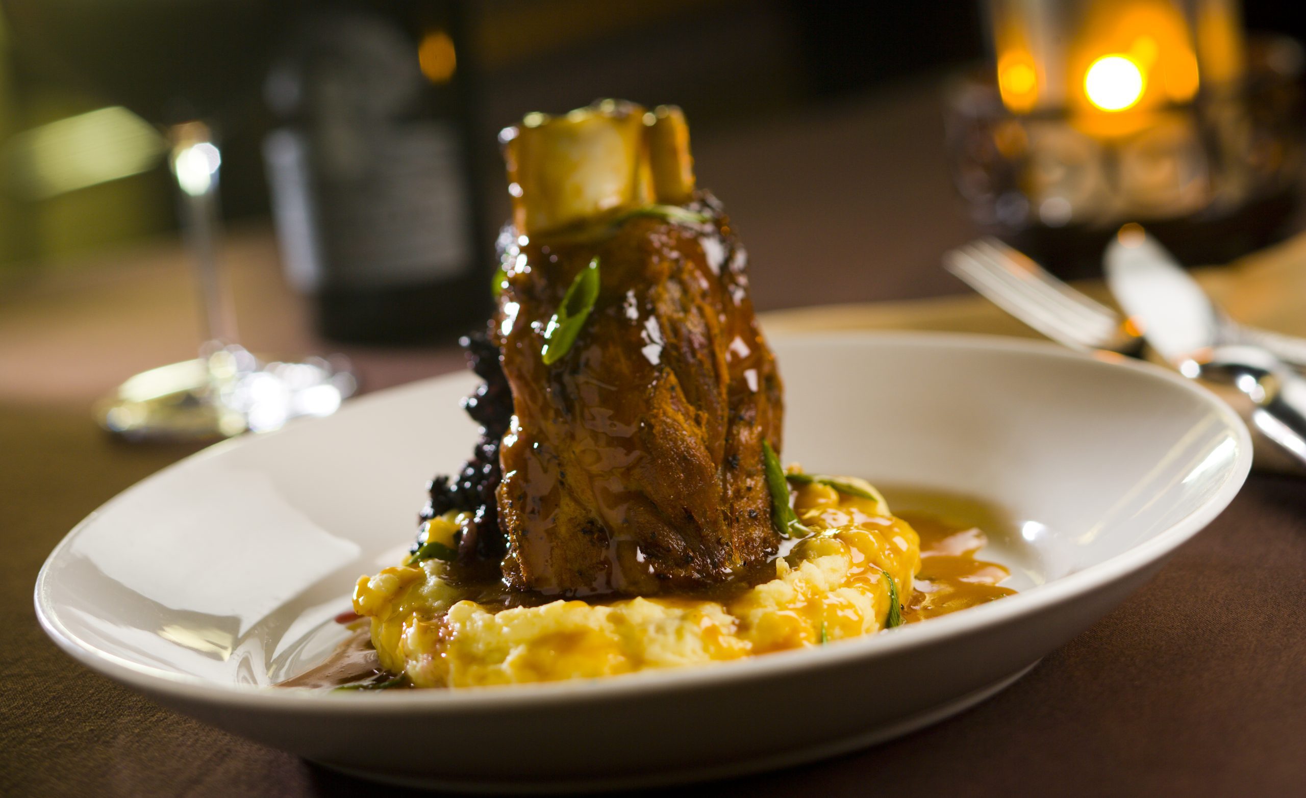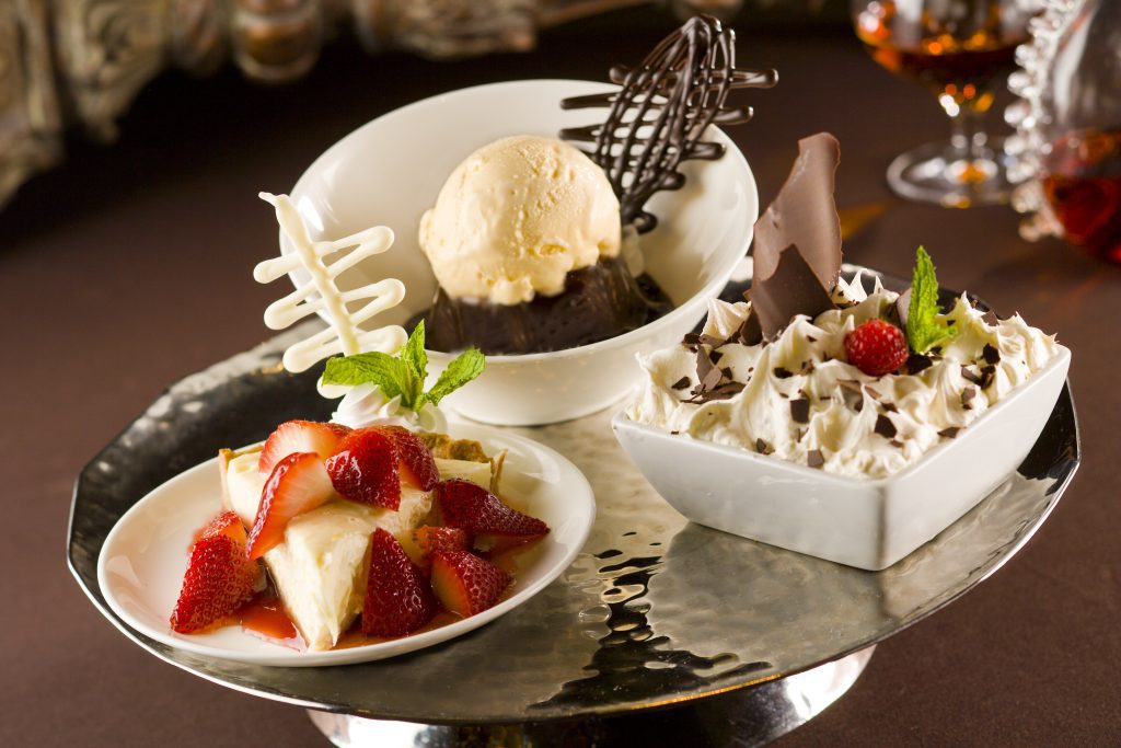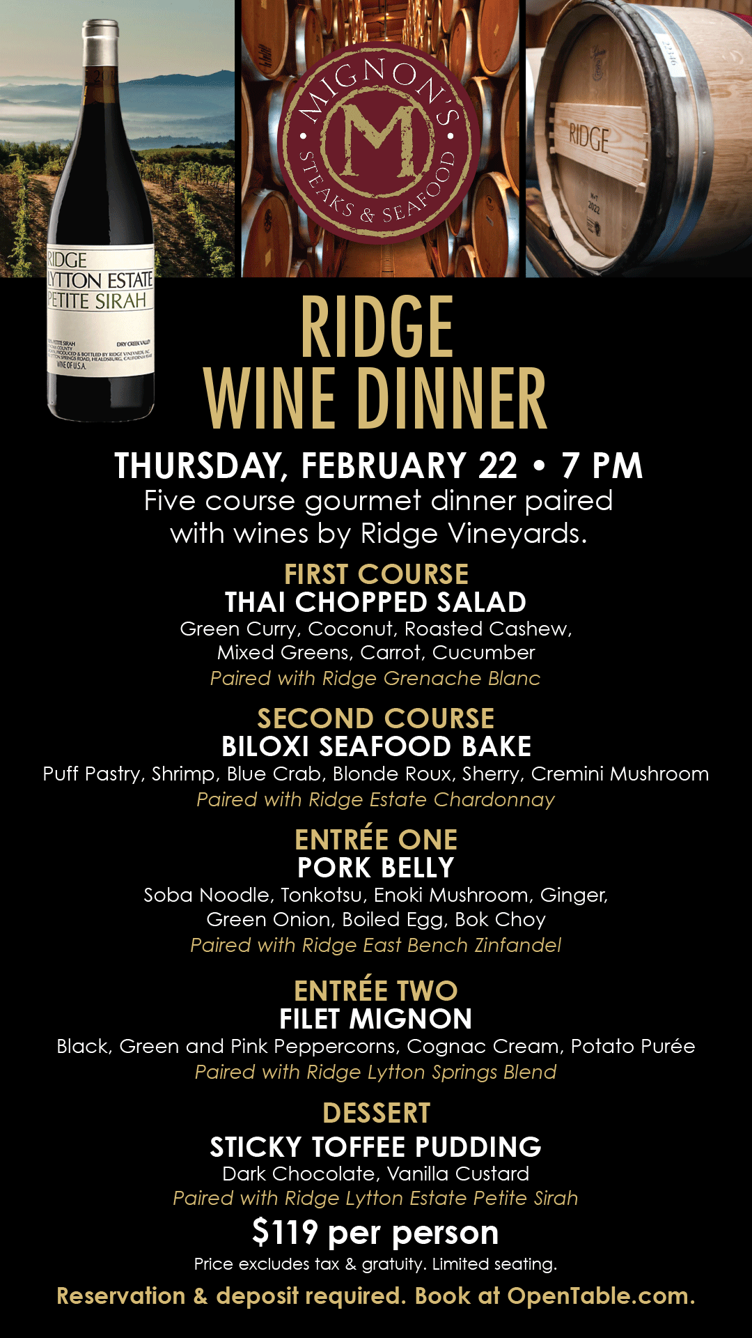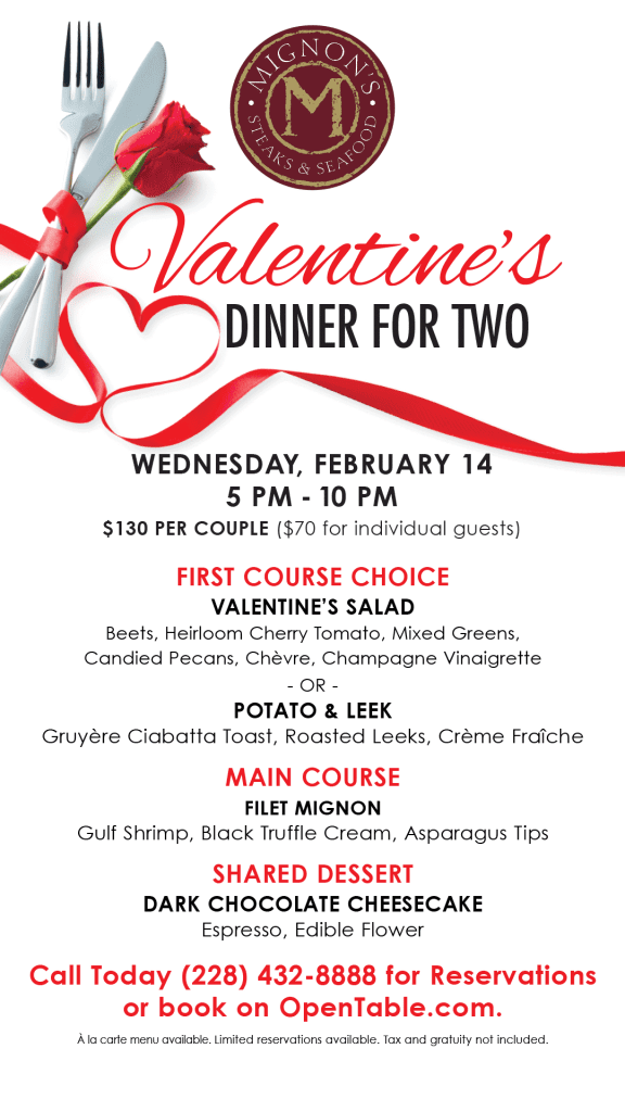 Now we are moving onto entrees after a brief intermission. I ordered a red blend to accompany the Filet – 6 ounces of perfectly grilled, seared and served medium rare prime beef. We took three small bites to try naked, with Maitre d’Hotel butter, and with Point Reyes Blue Cheese butter. Every morsel was incredible! Mignon’s offers several add-ons, we opted for the butters over the seafoods – sautéed shrimp, fried oysters, lump blue crab, Oscar, and cold water lobster. They also offer a Bernaise or Au Poivre sauce, and two more butters – cowboy bacon butter, and black truffle butter. All of these sides are very tempting! We ordered Grilled Asparagus, Garlic Mashed Potatoes, and Bacon Sweet Potato Hash for Sharable Sides, with several other options including Lobster Mac & Cheese! Every Sunday they have a Prime Rib Dinner, set-up prefix, choice of chop house salad or Caesar salad, which I already mentioned was great! A 14 ounce slab of greatness, served with a garlic mash, white cheddar soufflé. The best prime rib I’ve eaten, seasoned and cooked to bright pink with aujus for dipping. I could not stop raving over the superb execution of this prime beef! The dinner also comes with a dessert, Cheli had a mighty fine looking Crème Brulee! All of this for $45! There isn’t a better bang for this up-scaled meal!