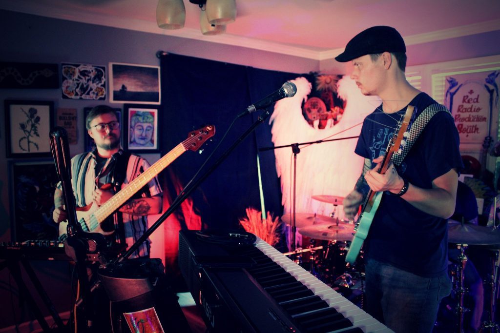 Vinyl Minds continued working on their first batch of songs while making special appearances, including a short set at the memorial benefit for their friend and respected gulf coast musician Carlos Faul Jr. The band is only performing original tunes, and the open mic and pop up show format has been a great way for them to get on stages as they expand their catalog with the goal of performing full length shows in the coming months.